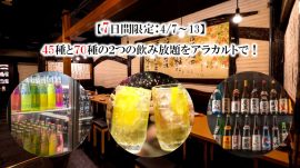 ・1時間単位でご延長も可能です(延長1時間につき45種飲み放題は1,000円・70種飲み放題は1,200円となります)