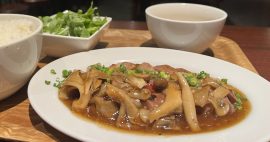 今週は、人気の週替わりランチ「特製ハンバーグ」を、旬のきのこをたっぷりと使った自家製のクリームソースでご用意しました。