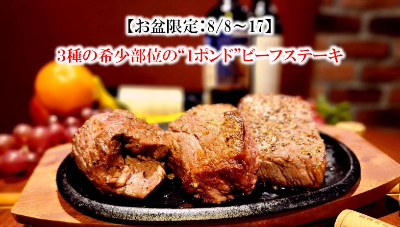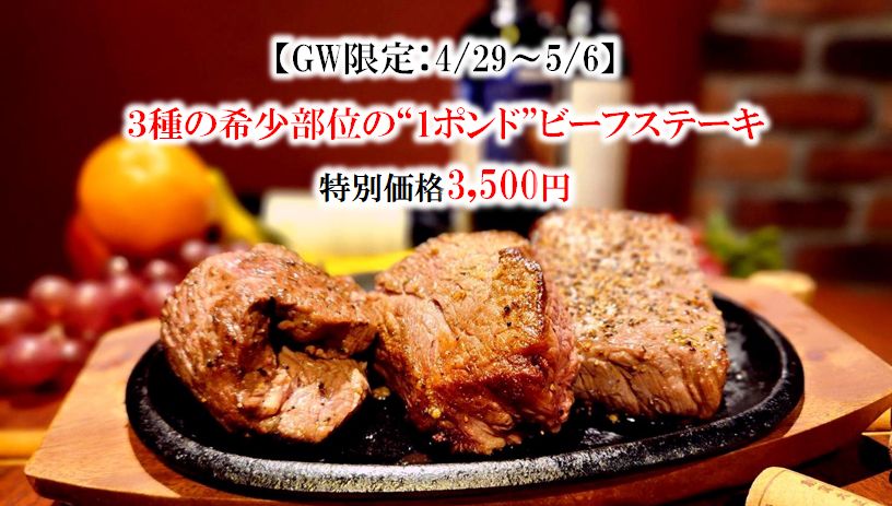 毎月恒例の『限定フェア』、11月の今回は『牛・鹿・羊のステーキ盛り合わせ』を特別価格でご用意しました。
