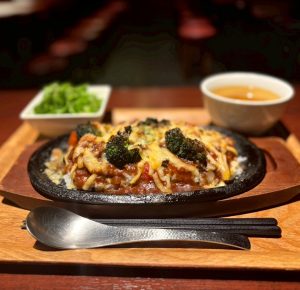 ソースは香味野菜の甘みとニンニクの芳ばしさをマッチさせたパンチのあるソースでお楽しみ下さい。