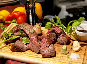 各部位100g、総重量300gの贅沢なグリルステーキ盛り合わせでご用意しました。