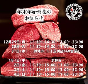 12月31日 お休み(二子玉川店のみ営業)