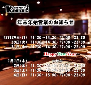 当店の年末年始の営業時間は下記の通りとなります。