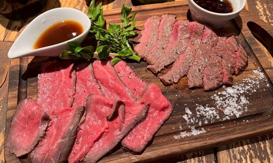 『“いわて短角牛” 赤身ステーキと自家製ローストビーフの盛り合わせ』・・・2,200円(税込2,420円)