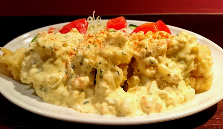 上からかけるタルタルソースは勿論自家製。卵の風味、ピクルスの酸味が効いたタルタルソースと一緒にご賞味下さい。