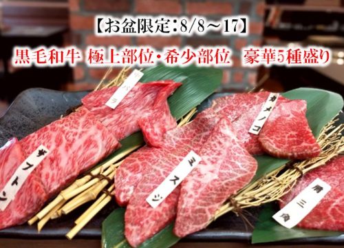 【お盆限定:8/8~17】黒毛和牛 極上部位・希少部位だけの豪華5種盛り(特別価格:2,929円)