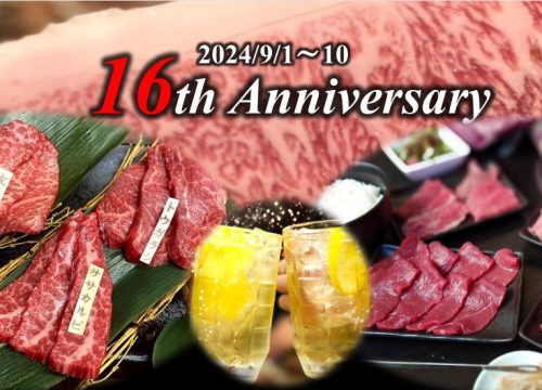 【16周年記念】上タン・上ハラミ・上カルビ・上ロースの特別盛り合わせ&焼肉ランチ&飲み放題(9/1~10)