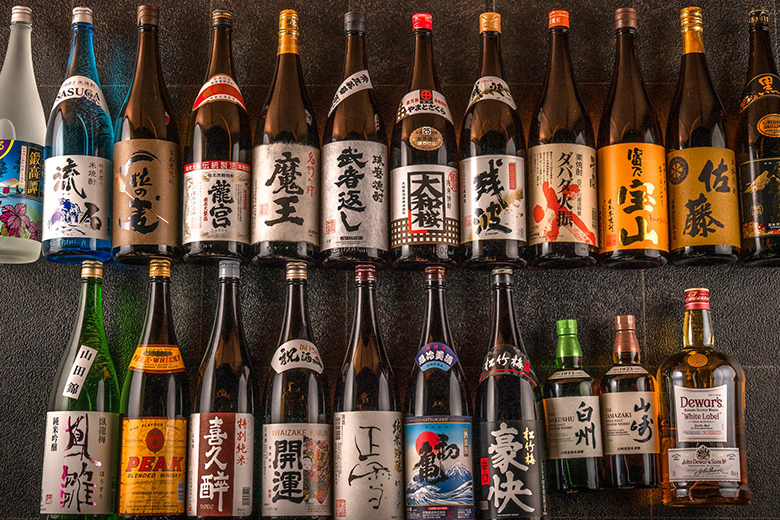 生ビール・サワー・ハイボール・日本酒・焼酎・梅酒・果実酒・ノンアルコール・ソフトドリンクの通常飲み放題に、さらに瓶ビール、地酒やカップ酒、ホッピーなどの瓶サワー全種、国産ワインやプレミアムハイボールなど70種以上