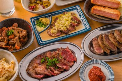焼肉でも人気の定番「ハラミ」に、濃厚な肉味で旨味が凝縮した「ロース」、赤身と霜降りの絶妙なバランスの極上希少部位「ザブトン」、部位ごとに異なる食感や肉味をお楽しみ頂けます。