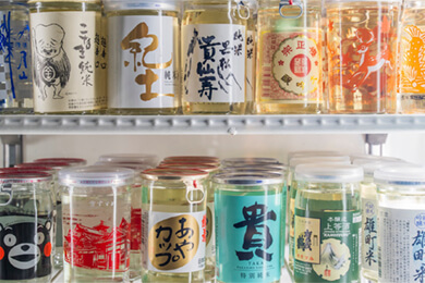 当店では一升瓶の限定自酒の他に、常時50種以上のカップ酒をご用意しております。
