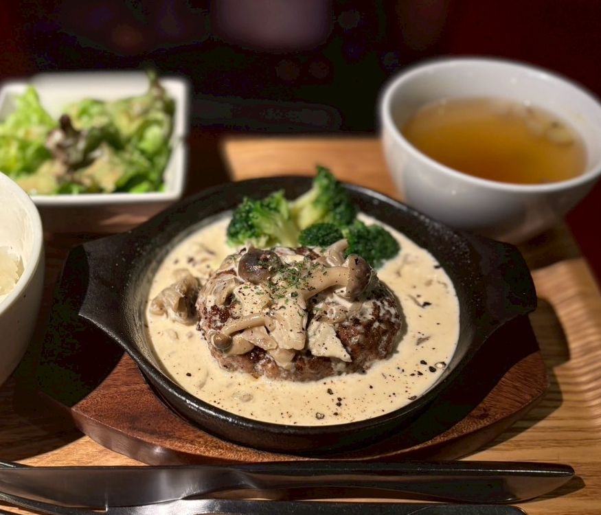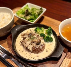 【Kamiichi:今週の週替わりランチ】特製ハンバーグ ~きのこクリームソース~(1,300円)