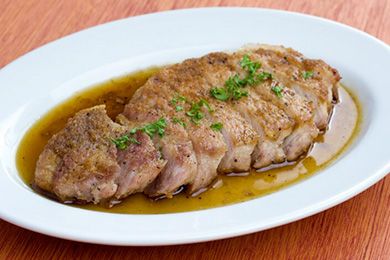 厳選した豚肩ロースを2時間以上かけて低温調理し、ほんのりと酸味の効いたガーリックソースでお楽しみください。